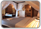The accommodation is simple, but elegant and very comfortable. The island is small, and there are only eight standard rooms and sixteen free-standing chalets – all beautifully constructed in hardwoods and with the beach right at your doorstep. Two bungalows hold four standard rooms each, suitable for double or triple occupancy. The chalets offer a little more privacy and are very spacious, with four-poster beds adding a romantic touch.