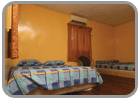 From the Genting Village jetty, follow the village pathway up north to find the Genting Bayu Chalet. The wooden chalets here are lined up in a garden, with well maintained rooms and brightly panited interiors.