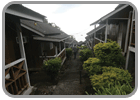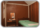 Dark wood chalets with white trimmings back up into the hillside. The rooms accommodate two, four or six people, all having air-conditioning and hot showers.